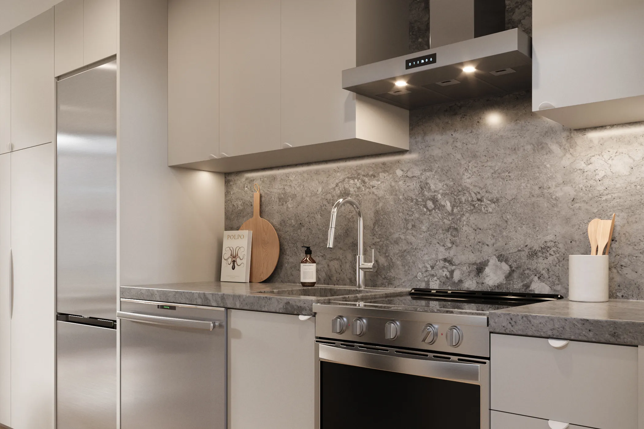 Custom frame cabinetry with quartz stone countertop